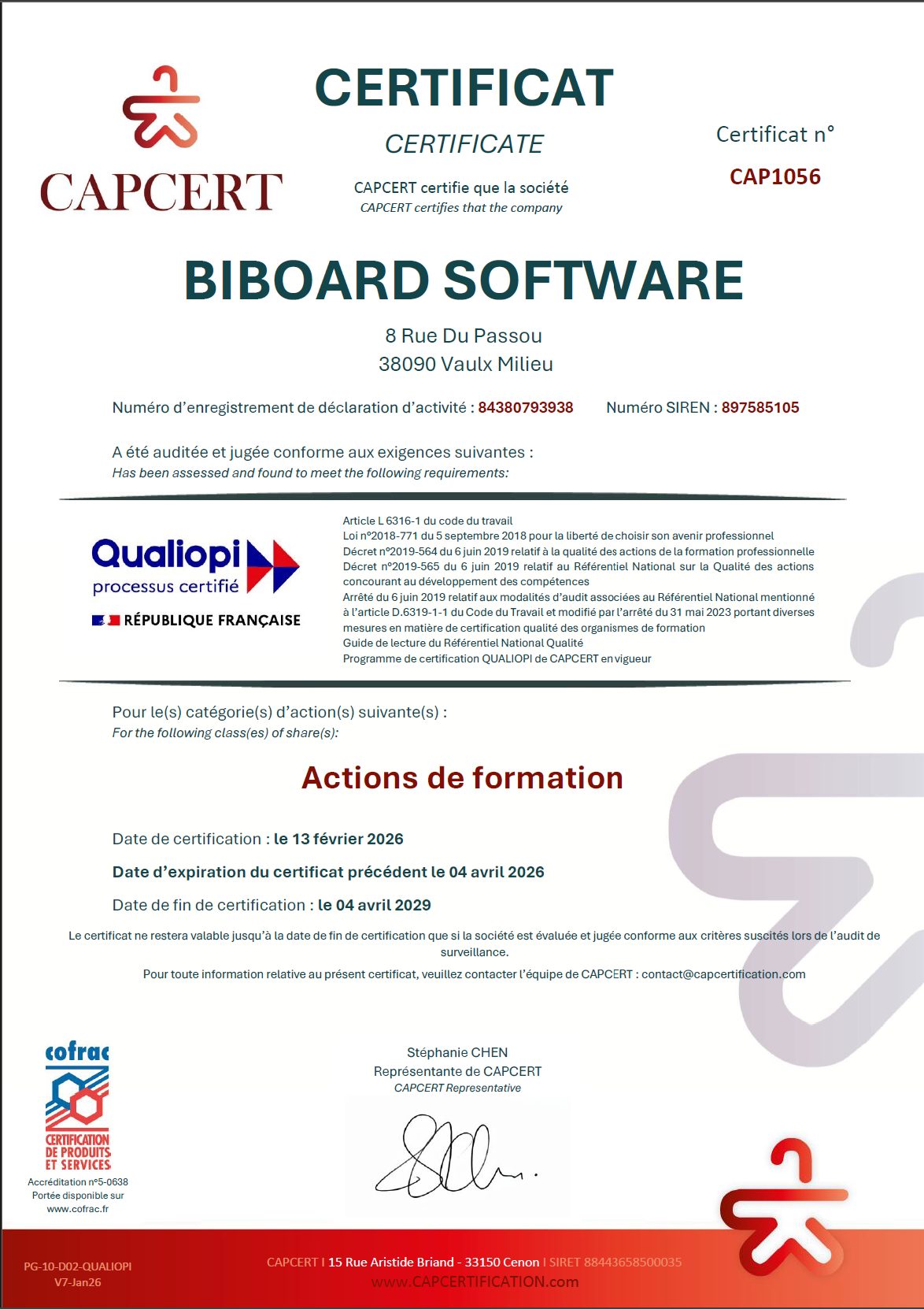 La certification qualité a été délivrée au titre de la catégorie d’action suivante : ACTIONS DE FORMATION